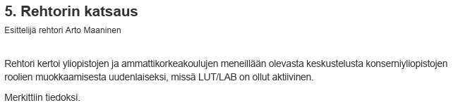 (*) Kiintoisasti LUT-yliopiston ammattikorkeakouluyhteistyön näkemys on linjassa Oulun yliopiston ja Oulun ammattikorkeakoulun vararehtoreiden 2015 laatiman ehdotuksen kanssa. Ko. paperi löytyy 31.3.2026 julkaisemani blogiartikkelin lopusta. Sen toteuttaminen ei tuolloin 2010-luvun puolivälissä vaatinut omistusta, eikä vaatisi nykyäänkään. Olisi tarvittu ainoastaan halua molempia hyödyttävään yhteistyöhön. Sen tarpeesta ei ollut tuolloinkaan pulaa.